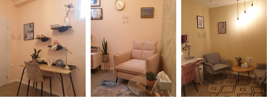 הקליניקה מעוצבת ואינטימית, מיועדת לטיפולים באמצעות שיח.