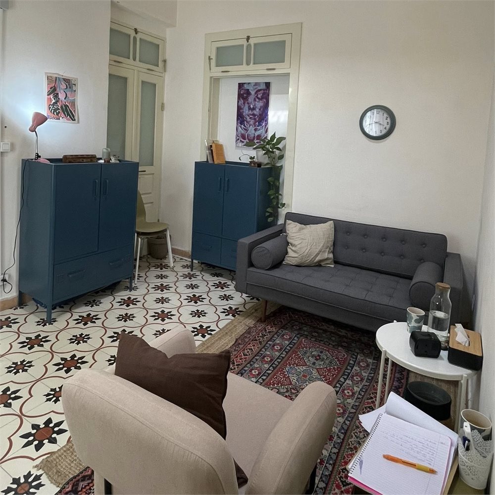 מתאים לטיפול שיחתי, טיפול במגע (יש מיטת טיפולים) וטיפול בילדים (יש שולחן, כיסאות וארון איחסון).