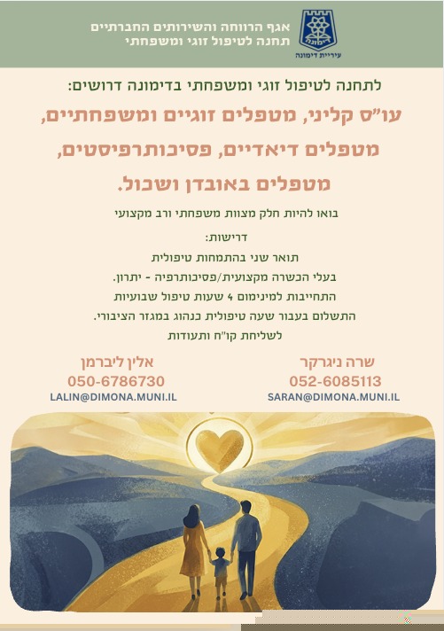 דרושים מטפלים לצוות המקצועי של התחנה לטיפול זוגי ומשפחתי בדימונה