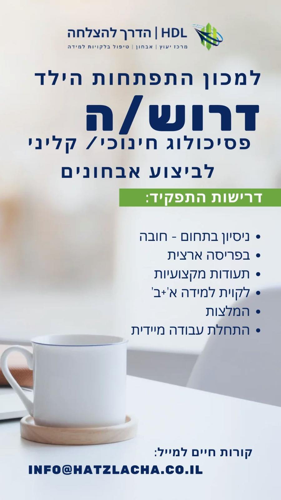 דרוש.ה פסיכולוג.ית חינוכי / קליני לביצוע אבחונים בפריסה ארצית
