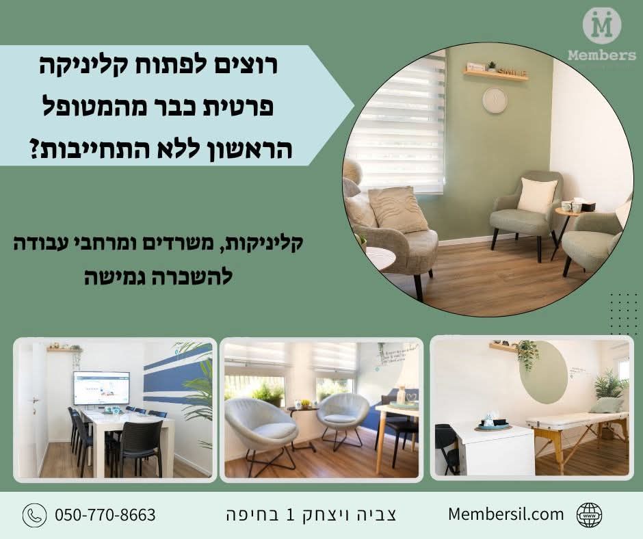 Members מתחם קליניקות מעוצבות להשכרה בגמישות מלאה בחיפה