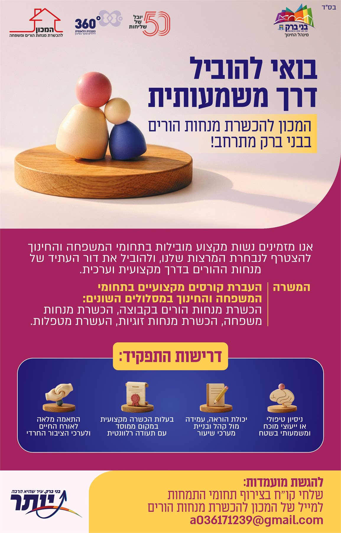 דרושות מרצות למכון להכשרת מנחות הורים ומשפחה בבני ברק