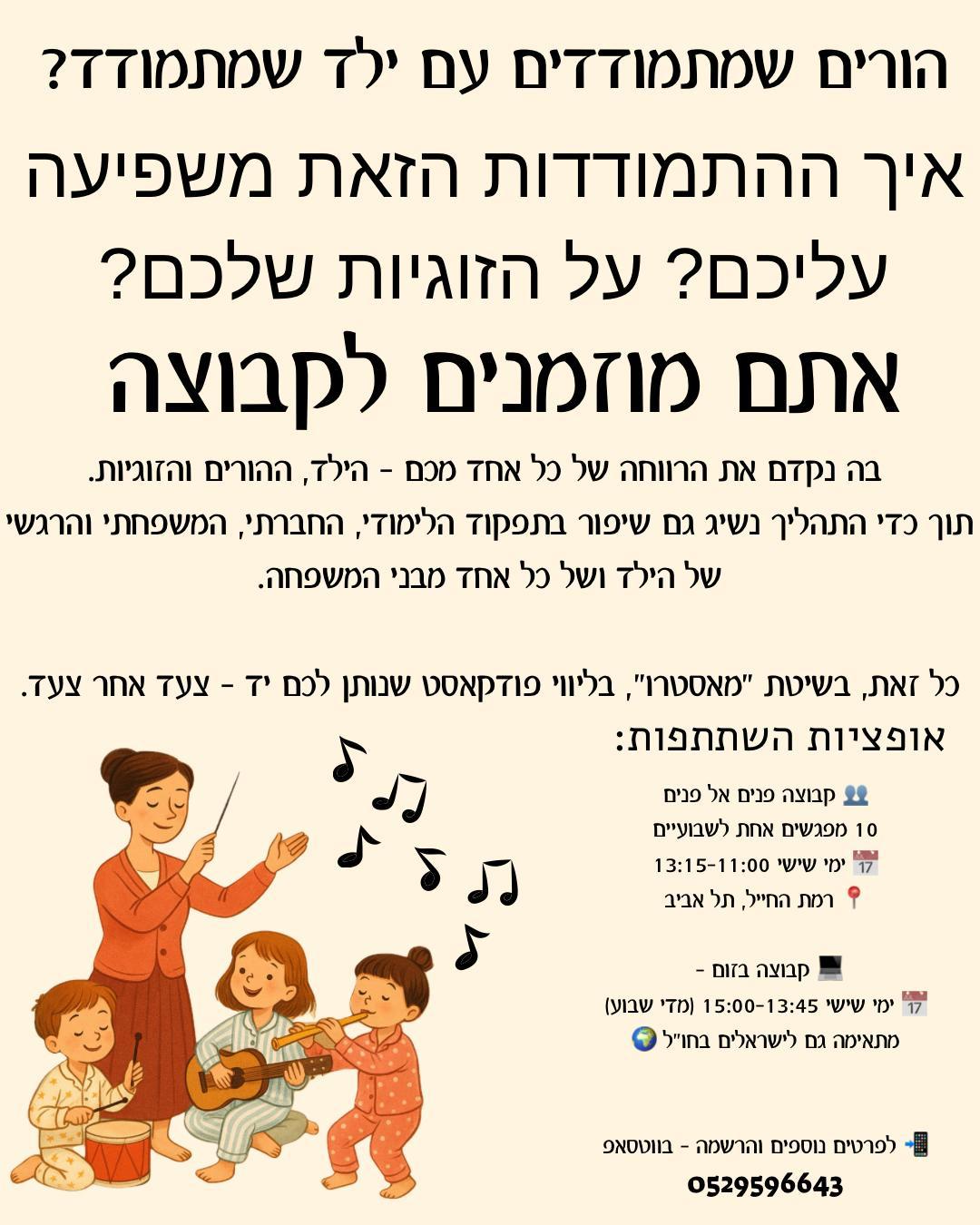 קבוצת הורים בשיטת מאסטרו בתל אביב או אונליין