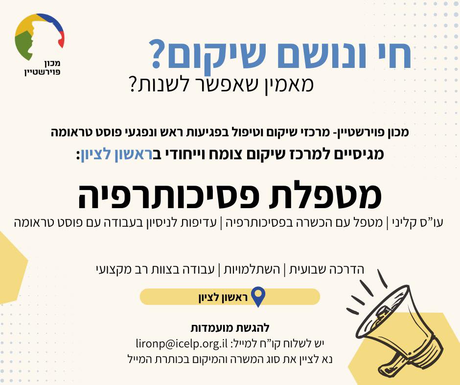 למכון פוירשטיין דרושה מטפלת פסיכותרפיה בראשון לציון