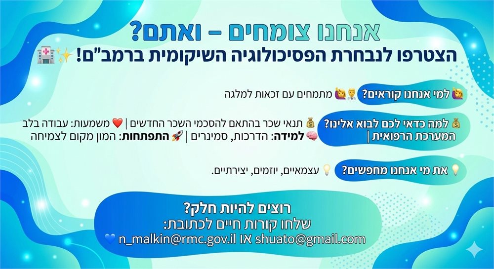 מכרז להתמחות בפסיכולוגיה שיקומית בקריה הרפואית רמב"ם בחיפה