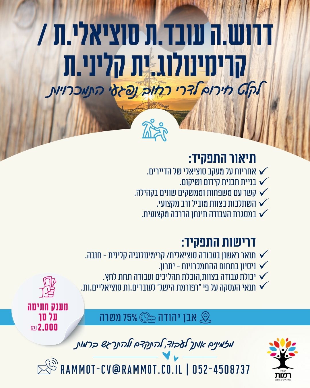 קבוצת רמות מגייסת עו"ס.ית / קרימינולוג.ית קליני.ת באבן יהודה