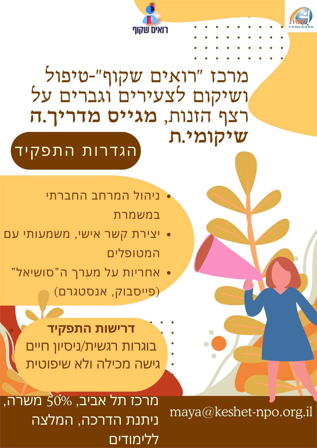 מרכז "רואים שקוף" מגייס מדריך/ה שיקומי/ת בתל אביב