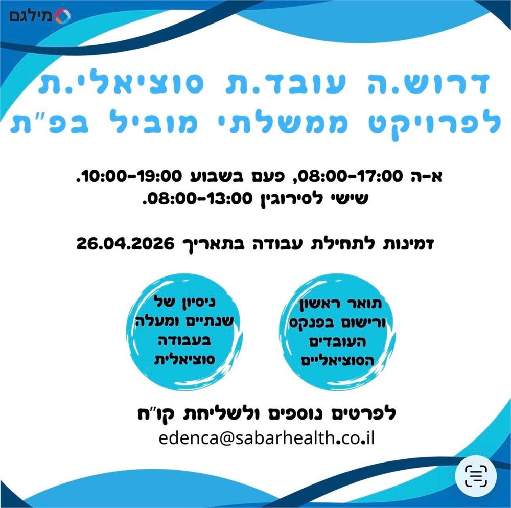 לעבודה שיקומית עם מתמודדי נפש בדיור מוגן / הוסטל / קהילה תומכת באזורים: ירושלים / בית-שמש / ראשל”צ / הרצליה / רחובות / אשקלון / בני-ברק / כפר-סבא. פורסם ב- 29/03/26