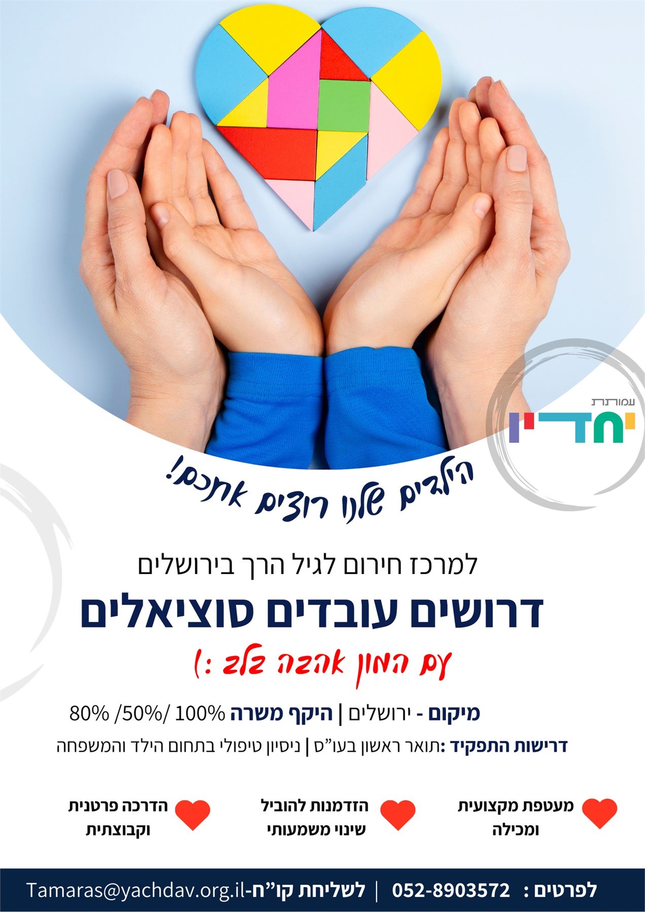 עמותת יחדיו מגייסת עו"סים/ות למרכז חירום לגיל הרך בירושלים