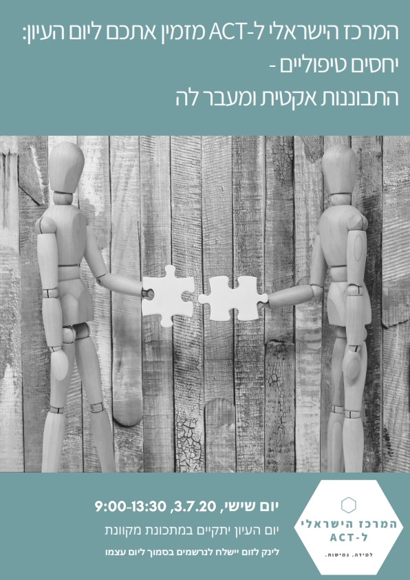 סדרת מפגשים מקוונים המציעה גישות, מודלים והתערבויות שהתגבשו בשדה הטיפולי במענה למגוון קשיים ומצוקות נפשיות, ומטרתה להנגיש לקהילה המקצועית ידע מקצועי שהתפתח סביב אתגרים טיפוליים ספציפיים.