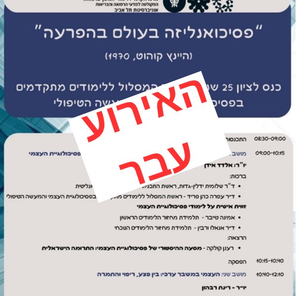 כנס לכבוד 40 שנה להיווסדו של כתב העת "שיחות", מוקדש לארבע הרצאות בתשתית החשיבה, העשייה והכתיבה הפסיכותרפויטית בישראל ובעולם. נעסוק בשאלת תשתית הידע של הפסיכותרפיה, במהותה ובתפקידה של הכתיבה אודותיה.