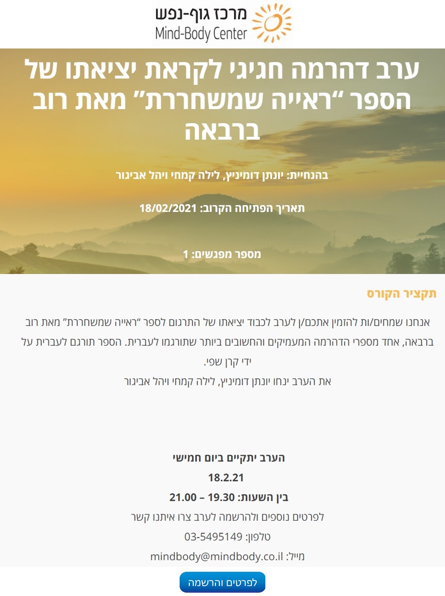 ערב דהרמה חגיגי לקראת יציאתו של הספר “ראייה שמשחררת”