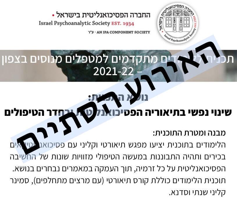 סדרת מפגשים מקוונים המציעה גישות, מודלים והתערבויות שהתגבשו בשדה הטיפולי במענה למגוון קשיים ומצוקות נפשיות, ומטרתה להנגיש לקהילה המקצועית ידע מקצועי שהתפתח סביב אתגרים טיפוליים ספציפיים.
