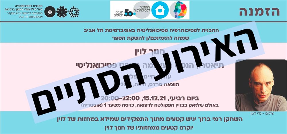 ערב השקה לספר: חנוך לוין - תיאטרון הנפש העירומה במבט פסיכואנליטי