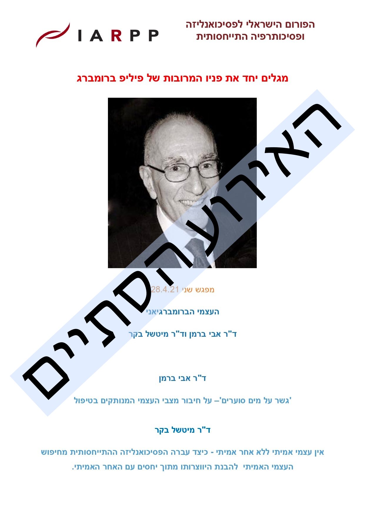 הרצאה: העצמי הברומברגיאני