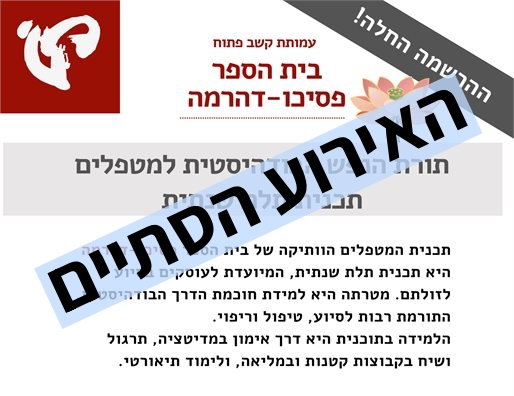 סדרת מפגשים מקוונים המציעה גישות, מודלים והתערבויות שהתגבשו בשדה הטיפולי במענה למגוון קשיים ומצוקות נפשיות, ומטרתה להנגיש לקהילה המקצועית ידע מקצועי שהתפתח סביב אתגרים טיפוליים ספציפיים.