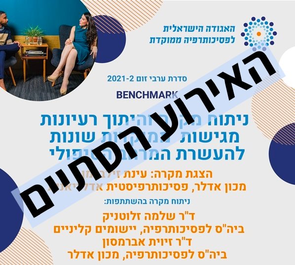 סדרת מפגשים מקוונים המציעה גישות, מודלים והתערבויות שהתגבשו בשדה הטיפולי במענה למגוון קשיים ומצוקות נפשיות, ומטרתה להנגיש לקהילה המקצועית ידע מקצועי שהתפתח סביב אתגרים טיפוליים ספציפיים.