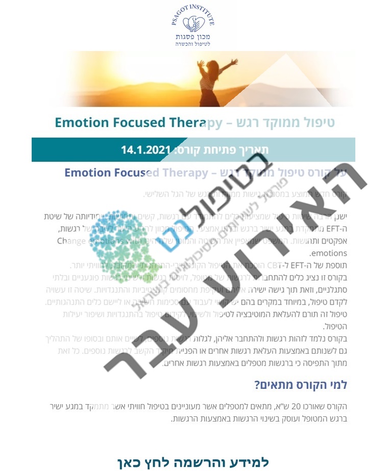 המציאות בישראל בשנים האחרונות מעצימה עוד יותר את הצורך במטפלים מיומנים, בעלי כלים מעשיים ותשתית תיאורטית יציבה. הקורס "מפת הדרכים לטיפול בטראומה" מבוסס על ניסיון קליני, מחקרי והדרכתי רחב היקף.