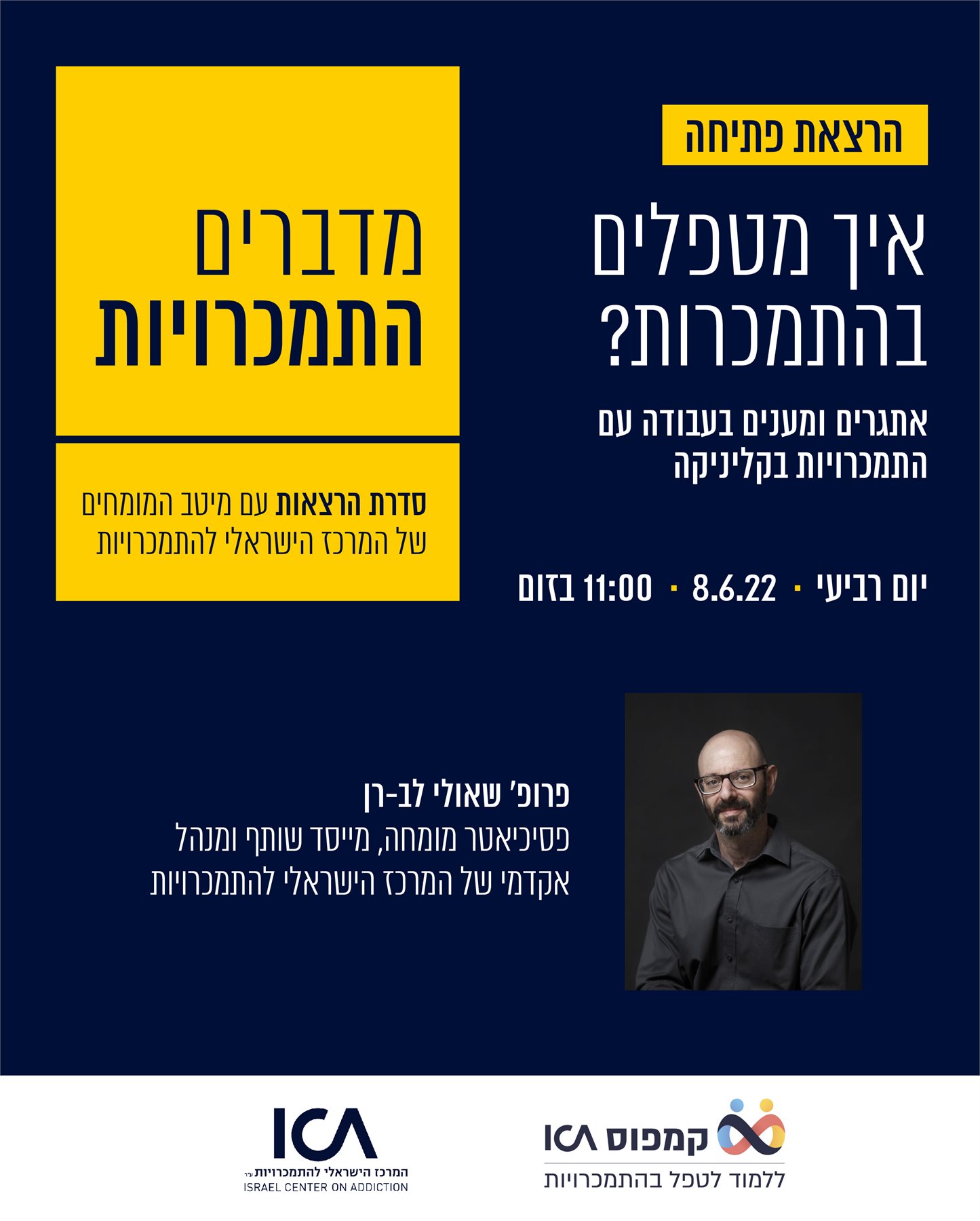 סדרת מפגשים מקוונים המציעה גישות, מודלים והתערבויות שהתגבשו בשדה הטיפולי במענה למגוון קשיים ומצוקות נפשיות, ומטרתה להנגיש לקהילה המקצועית ידע מקצועי שהתפתח סביב אתגרים טיפוליים ספציפיים.
