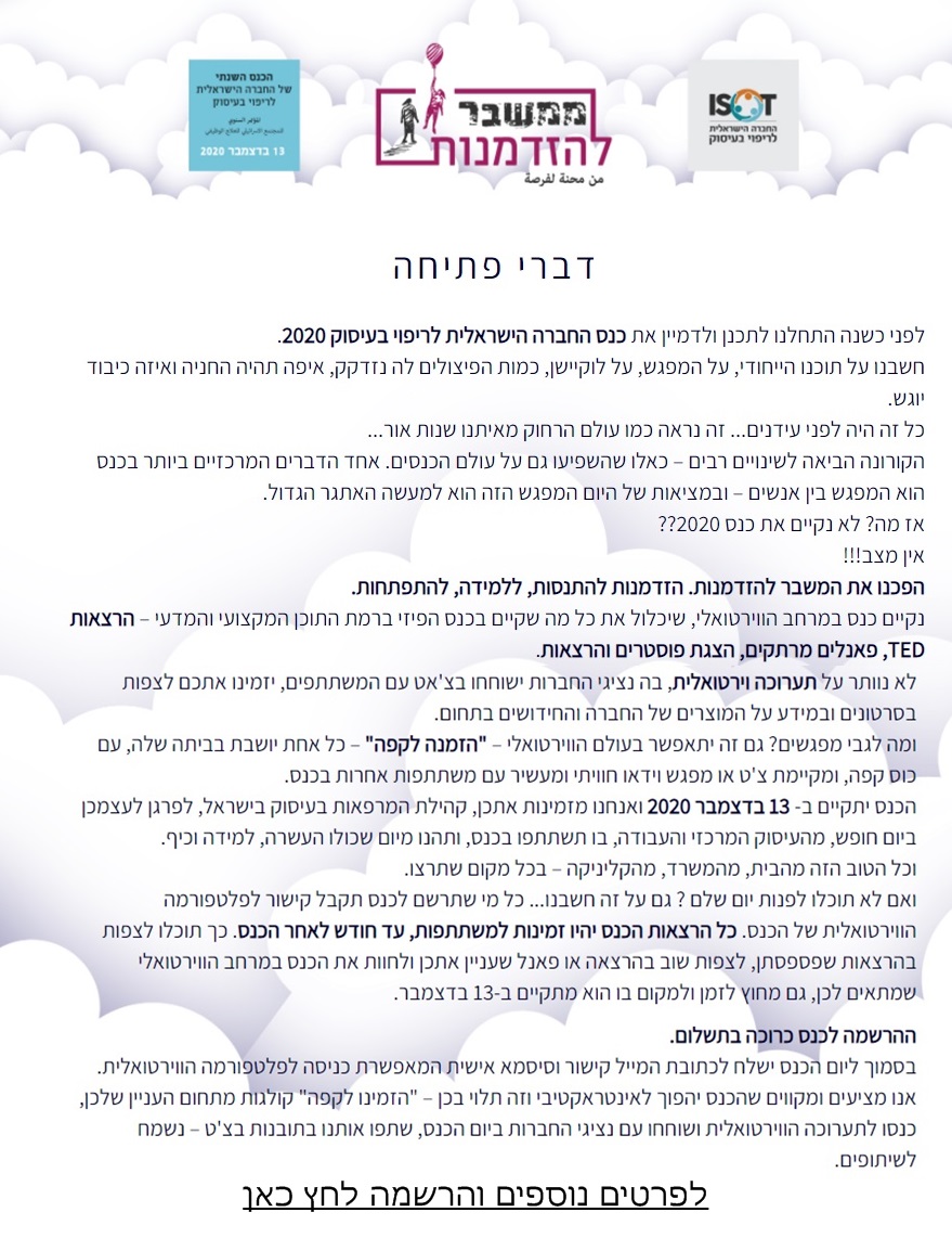 כנס החברה הישראלית לריפוי בעיסוק "ממשבר להזדמנות"