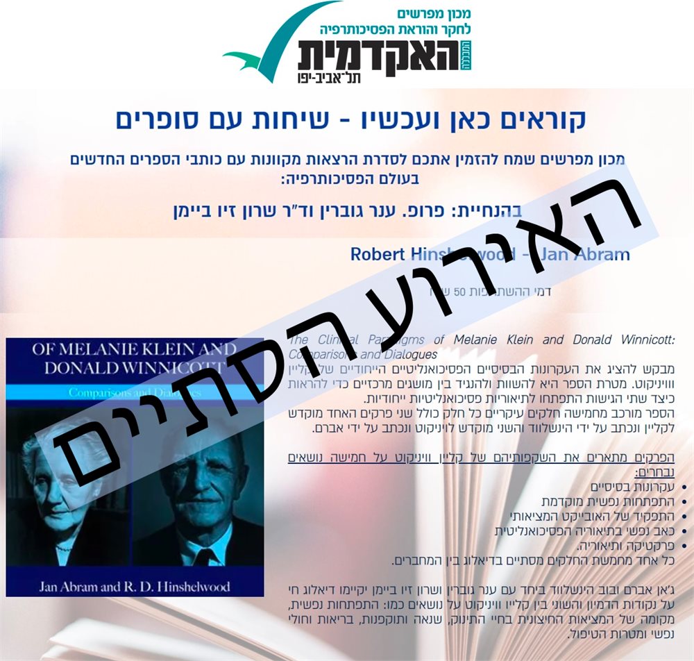 הרצאה: הפרדיגמה הקלינית של מלאני קליין ודונלד ויניקוט