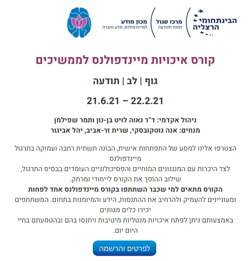 קורס איכויות מיינדפולנס לממשיכים