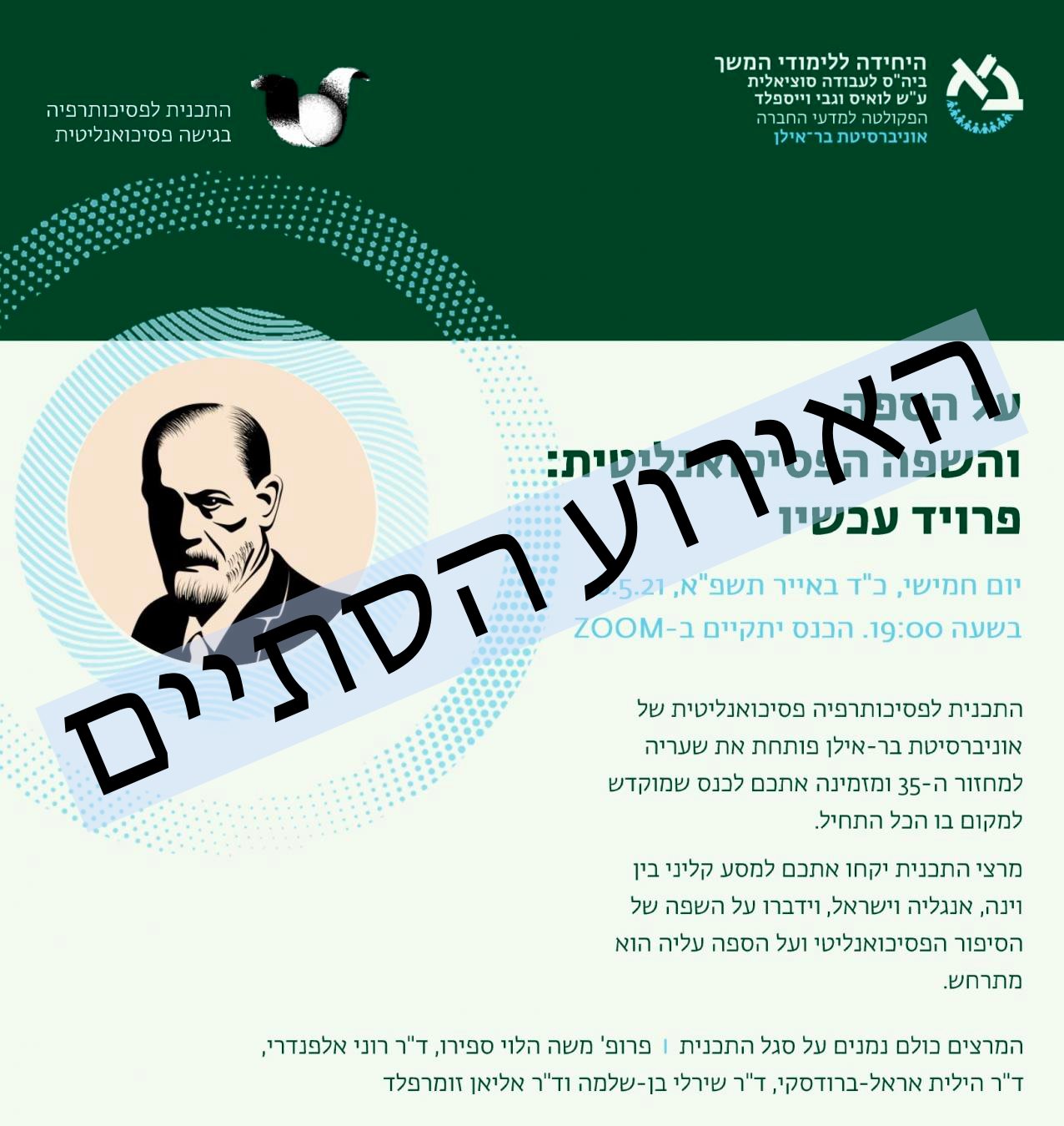 ערב עיון: על הספה והשפה הפסיכואנליטית: פרויד עכשיו