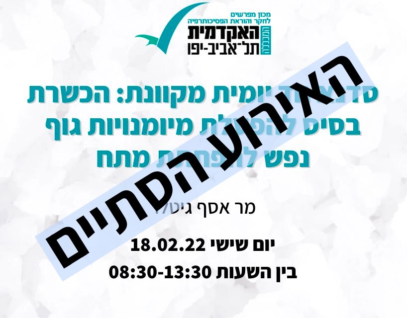 סדרת מפגשים מקוונים המציעה גישות, מודלים והתערבויות שהתגבשו בשדה הטיפולי במענה למגוון קשיים ומצוקות נפשיות, ומטרתה להנגיש לקהילה המקצועית ידע מקצועי שהתפתח סביב אתגרים טיפוליים ספציפיים.