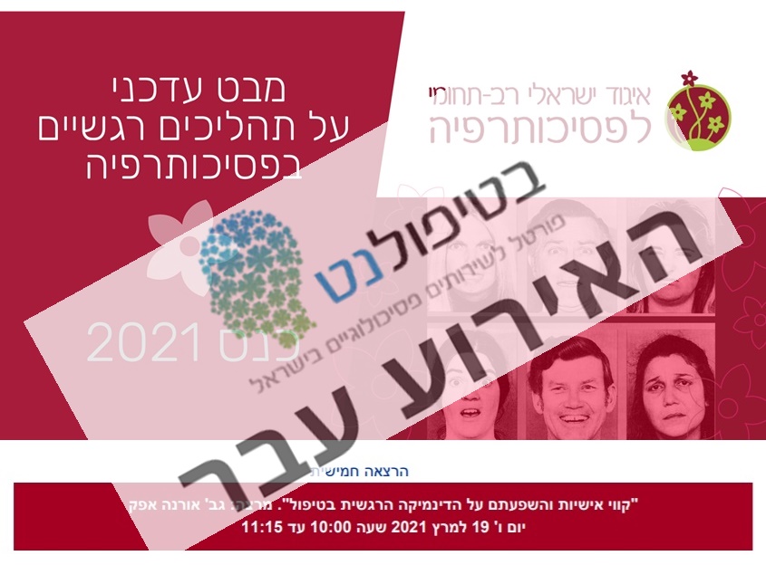 סדרת מפגשים מקוונים המציעה גישות, מודלים והתערבויות שהתגבשו בשדה הטיפולי במענה למגוון קשיים ומצוקות נפשיות, ומטרתה להנגיש לקהילה המקצועית ידע מקצועי שהתפתח סביב אתגרים טיפוליים ספציפיים.