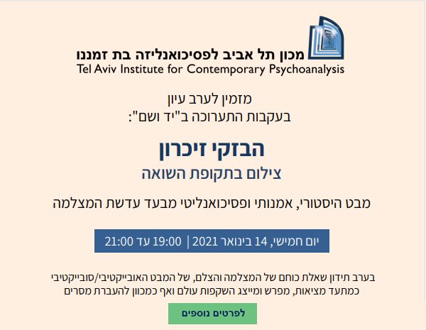ערב עיון בעקבות התערוכה "הבזקי זיכרון – צילום בתקופת השואה"