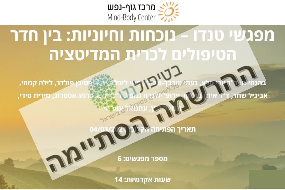 סדרת מפגשים מקוונים המציעה גישות, מודלים והתערבויות שהתגבשו בשדה הטיפולי במענה למגוון קשיים ומצוקות נפשיות, ומטרתה להנגיש לקהילה המקצועית ידע מקצועי שהתפתח סביב אתגרים טיפוליים ספציפיים.