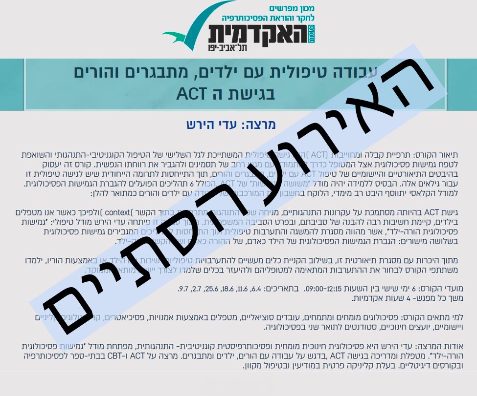 עבודה טיפולית עם ילדים, מתבגרים והורים בגישת ה-ACT