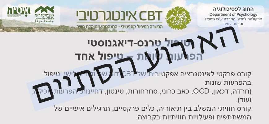 המציאות בישראל בשנים האחרונות מעצימה עוד יותר את הצורך במטפלים מיומנים, בעלי כלים מעשיים ותשתית תיאורטית יציבה. הקורס "מפת הדרכים לטיפול בטראומה" מבוסס על ניסיון קליני, מחקרי והדרכתי רחב היקף.