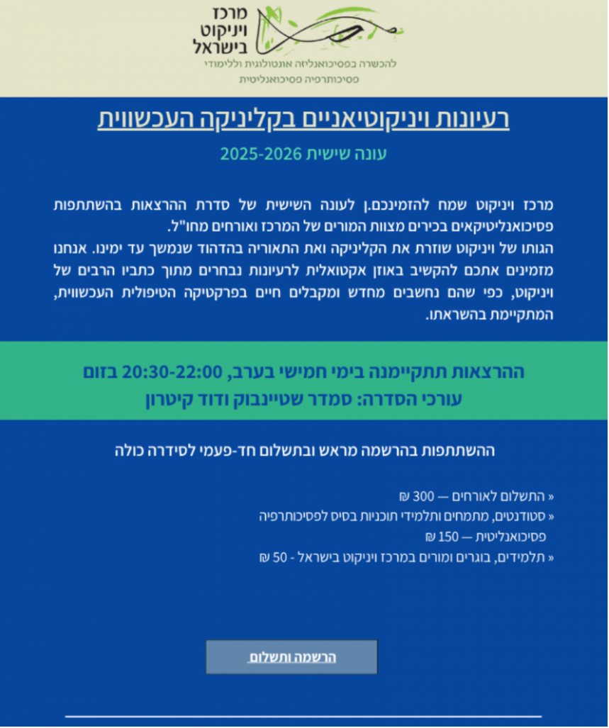 סדרת מפגשים מקוונת | המפגש הבא ב- 26/01/2026