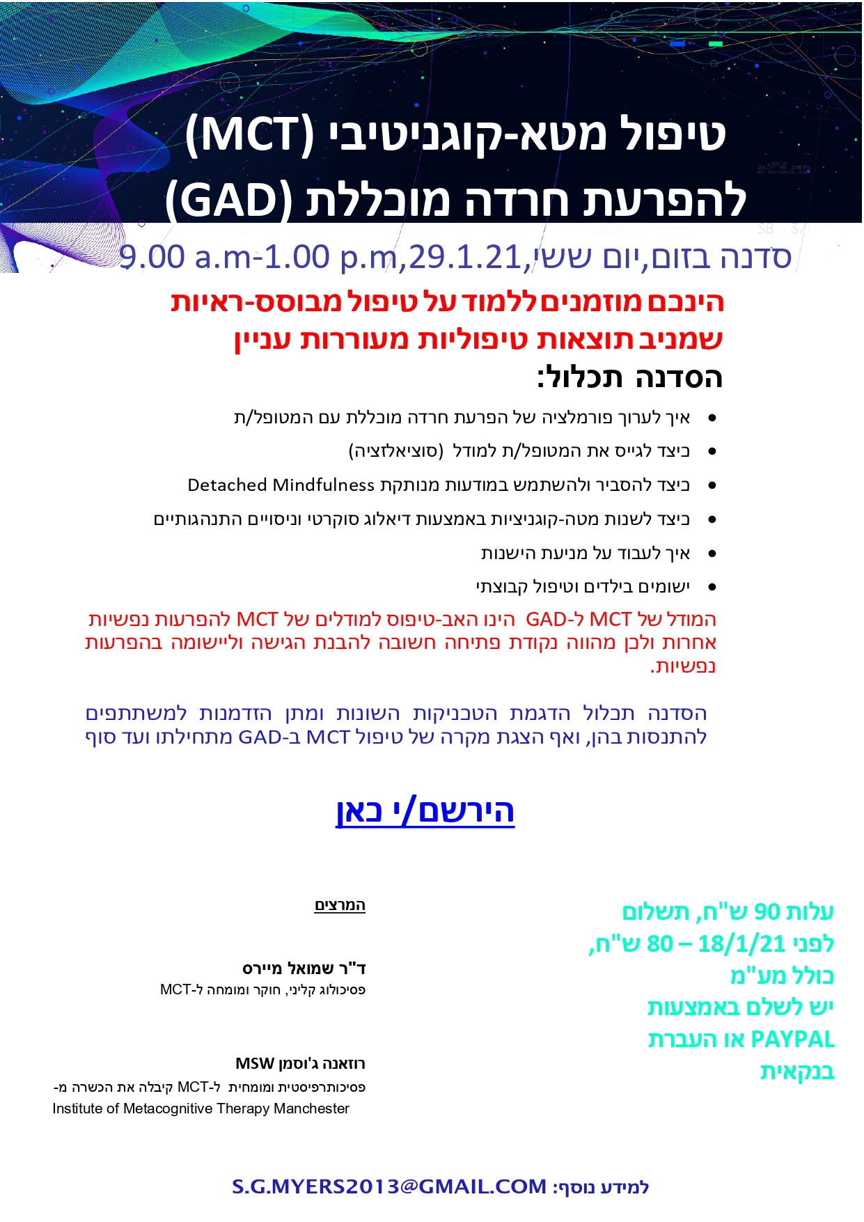 סדנה בנושא טיפול מטא-קוגניטיבי להפרעת חרדה מוכללת