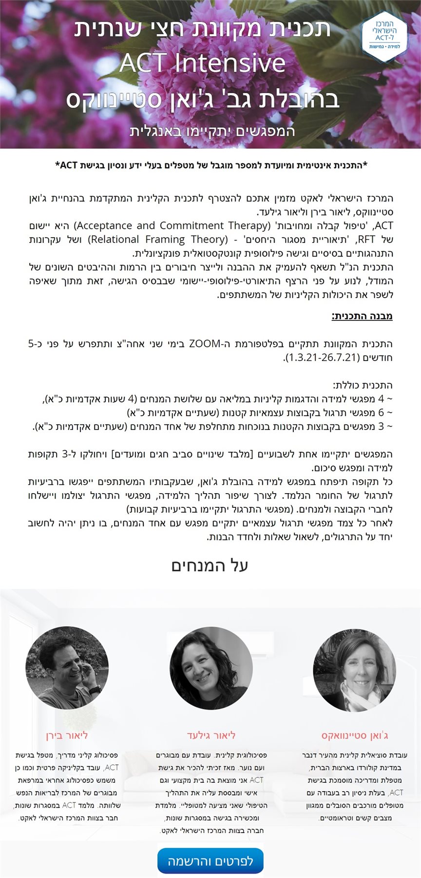 ACT Intensive בהובלת גב' ג'ואן סטיינווקס