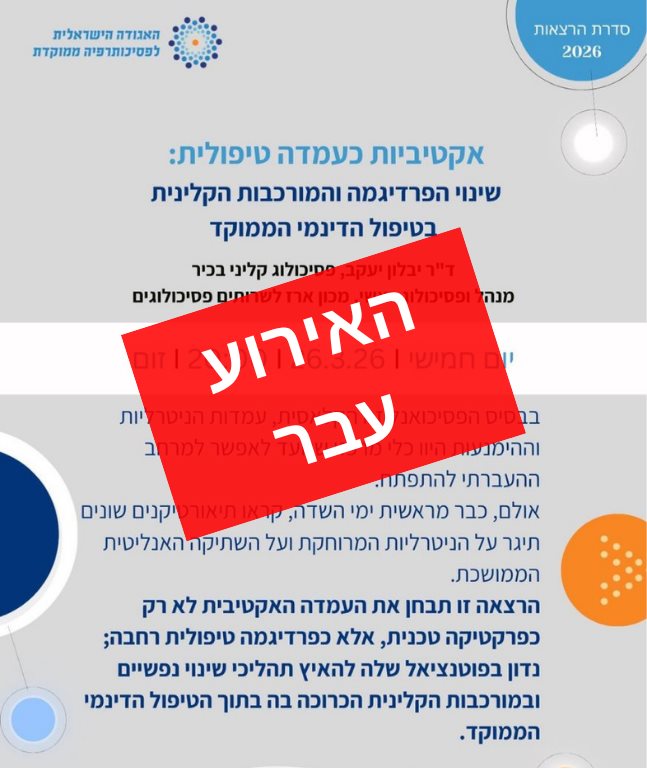 מקוון ללא עלות | 26.04.2026 | יום ראשון | 19:30-21:00