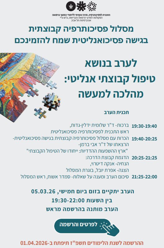 ערב חשיפה מסלול קבוצות - טיפול קבוצתי אנליטי: מהלכה למעשה