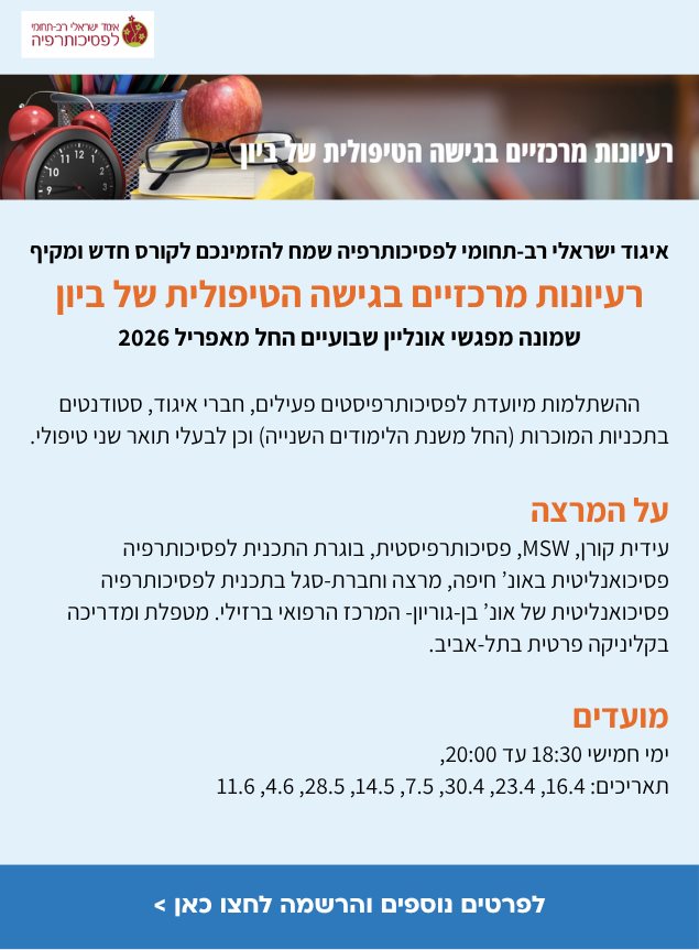 מקוון ללא עלות | 26.04.2026 | יום ראשון | 19:30-21:00