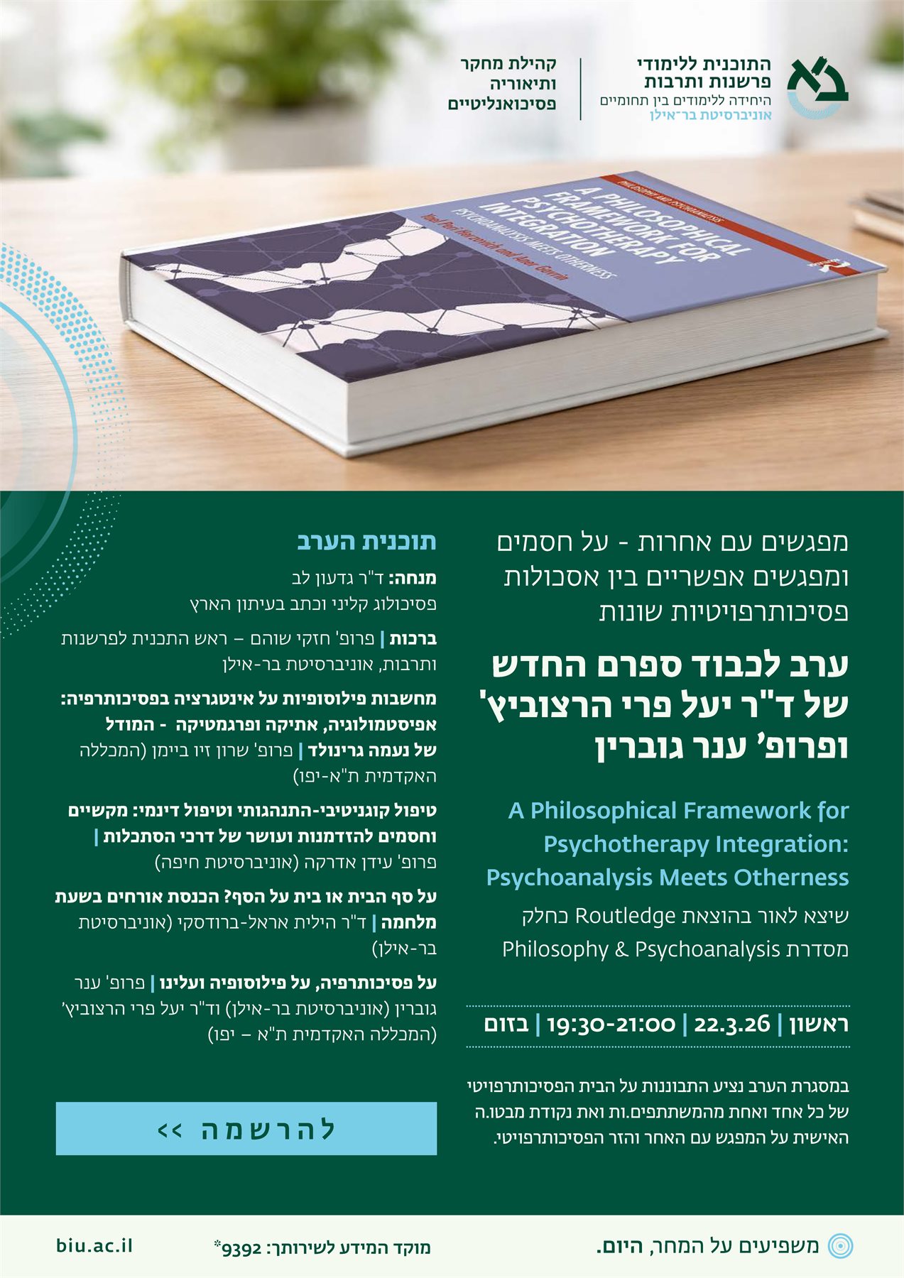 ערב לכבוד ספרם של ד״ר יעל פרי הרצוביץ׳ ופרופ׳ ענר גוברין