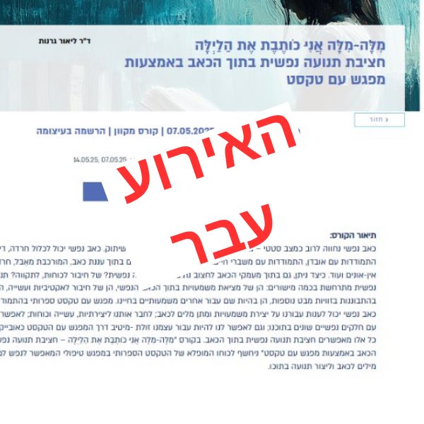 קורס מקוון | מפגש ראשון ב- 1.1.2026 | ימי חמישי 09:00-15:00