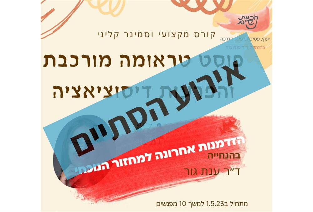 המציאות בישראל בשנים האחרונות מעצימה עוד יותר את הצורך במטפלים מיומנים, בעלי כלים מעשיים ותשתית תיאורטית יציבה. הקורס "מפת הדרכים לטיפול בטראומה" מבוסס על ניסיון קליני, מחקרי והדרכתי רחב היקף.