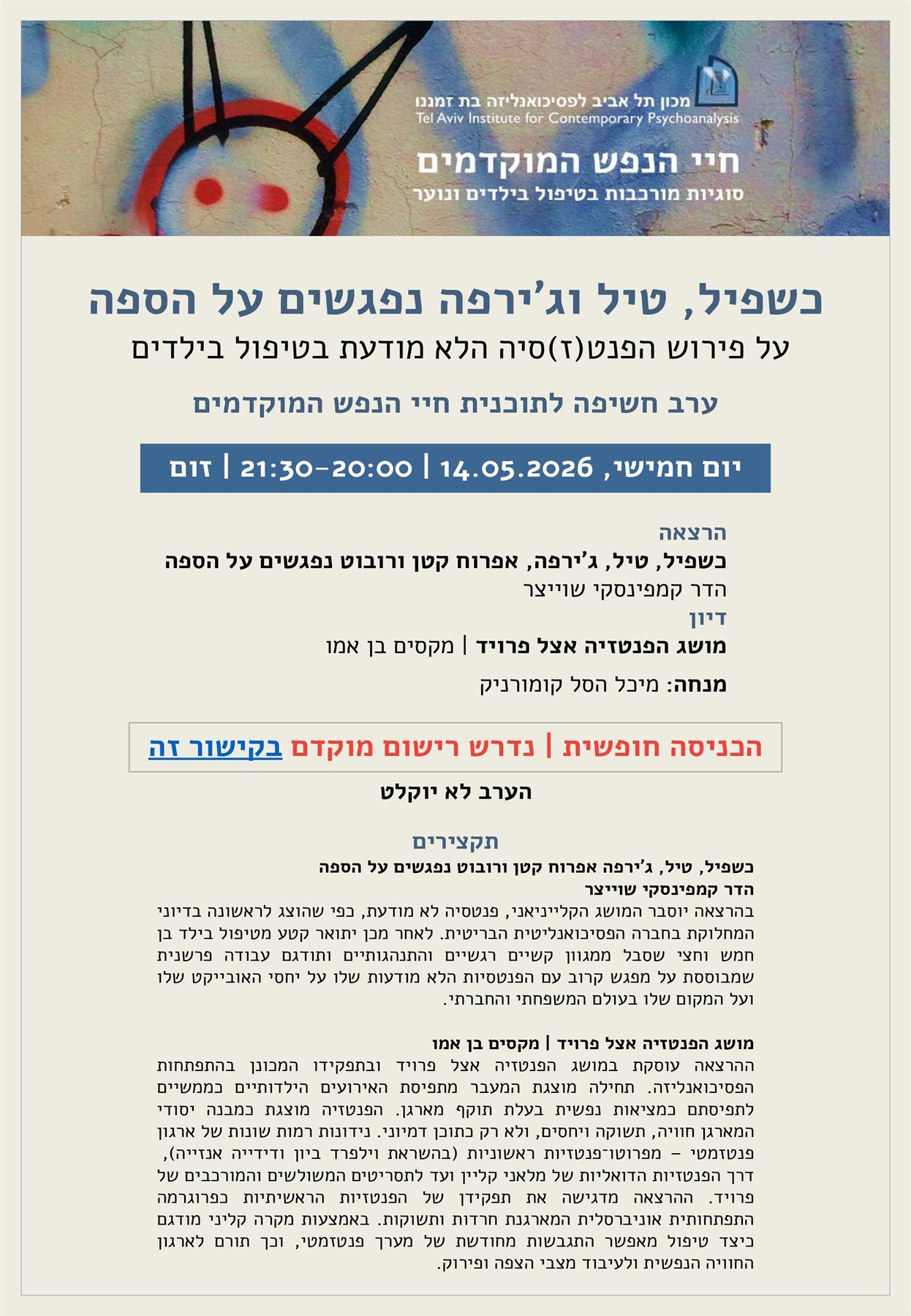 מקוון ללא עלות | 26.04.2026 | יום ראשון | 19:30-21:00