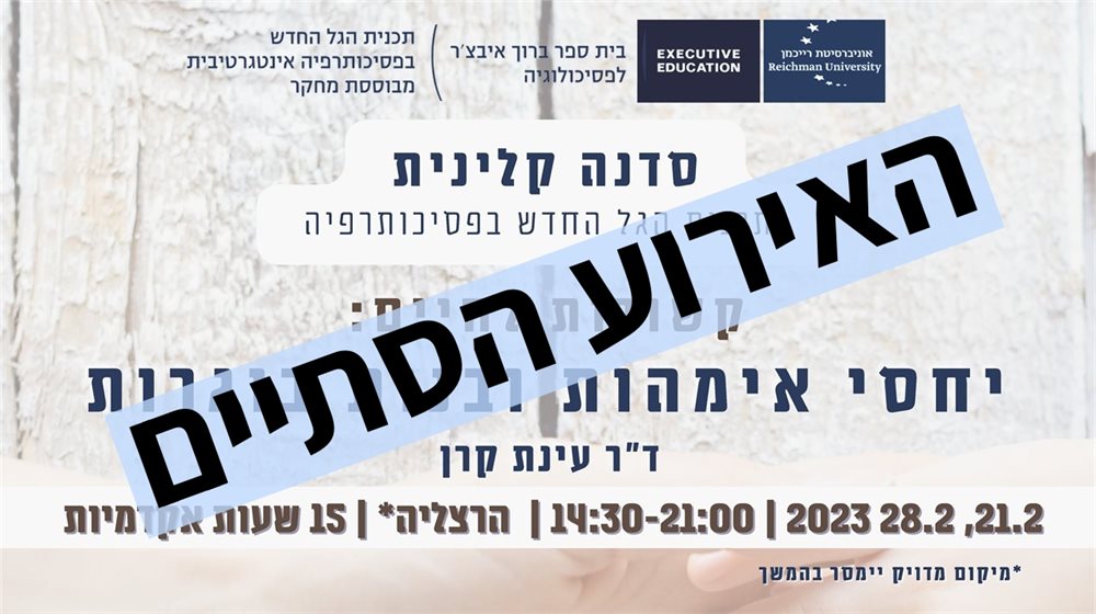 סדרת מפגשים מקוונים המציעה גישות, מודלים והתערבויות שהתגבשו בשדה הטיפולי במענה למגוון קשיים ומצוקות נפשיות, ומטרתה להנגיש לקהילה המקצועית ידע מקצועי שהתפתח סביב אתגרים טיפוליים ספציפיים.