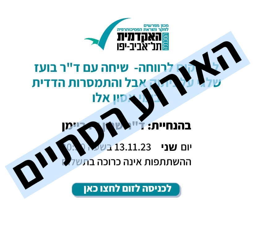 הכנס הפעם מוקדש לנו, קהילת המטפלות והמטפלים הזוגיים והמשפחתיים, שהתגייסו ומטפלים מאז היום שהפך את חיינו, בשבעה באוקטובר – בזוגות, משפחות וקהילות הנמצאות במעגלי פגיעה וטראומה רחבים ומתמשכים.
