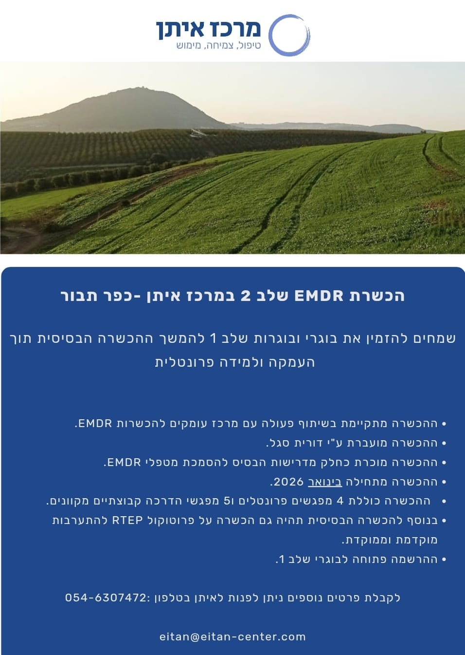 המציאות בישראל בשנים האחרונות מעצימה עוד יותר את הצורך במטפלים מיומנים, בעלי כלים מעשיים ותשתית תיאורטית יציבה. הקורס "מפת הדרכים לטיפול בטראומה" מבוסס על ניסיון קליני, מחקרי והדרכתי רחב היקף.