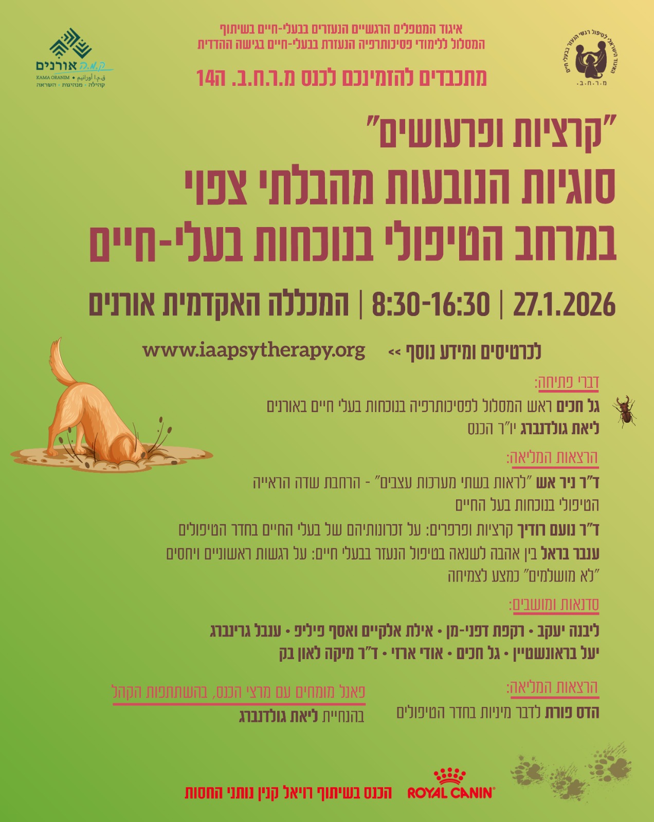 כנס מ.ר.ח.ב ה-14: סוגיות מהבלתי צפוי במרחב הטיפולי בנוכחות בעלי חיים