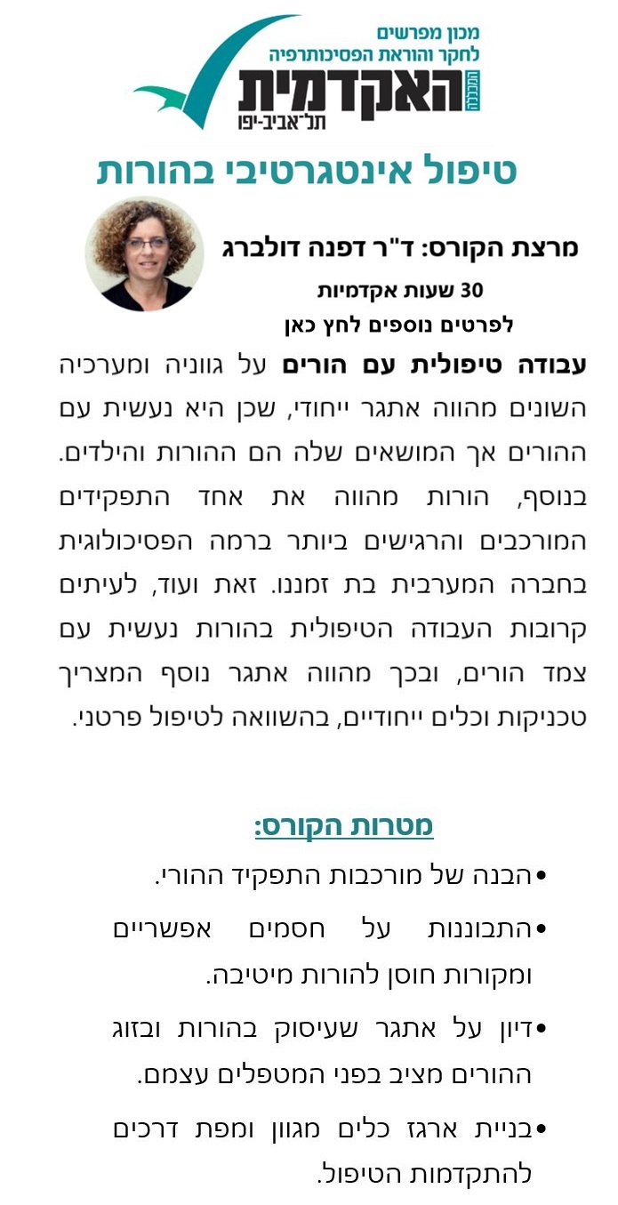 גישות טיפוליות שונות יצרו הפרדה מלאכותית בין שדות ההתערבות – הפרטני, הזוגי והמשפחתי. גישות אינטגרטיביות עדכניות תומכות בריבוי, גמישות ונוכחות מערכתית. במהלך יום העיון נציג מקרה קליני אחד שיבחן דרך שלוש עדשות טיפוליות.