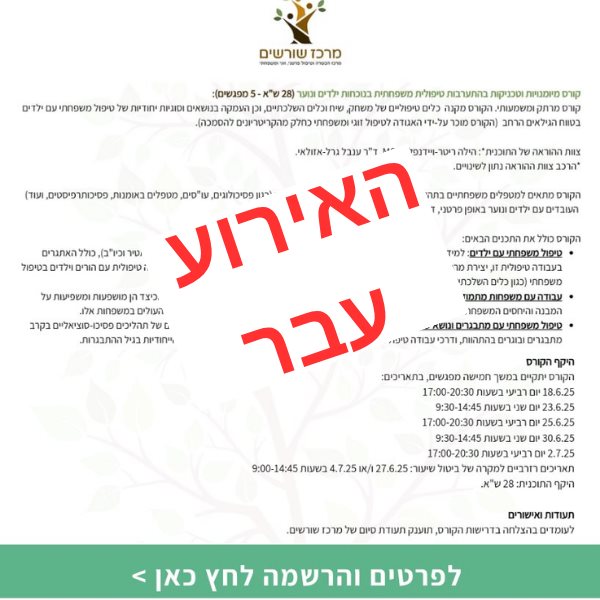 קורס מיומנויות וטכניקות בהתערבות טיפולית משפחתית בנוכחות ילדים ונוער