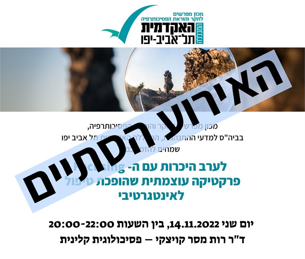 סדרת מפגשים מקוונים המציעה גישות, מודלים והתערבויות שהתגבשו בשדה הטיפולי במענה למגוון קשיים ומצוקות נפשיות, ומטרתה להנגיש לקהילה המקצועית ידע מקצועי שהתפתח סביב אתגרים טיפוליים ספציפיים.